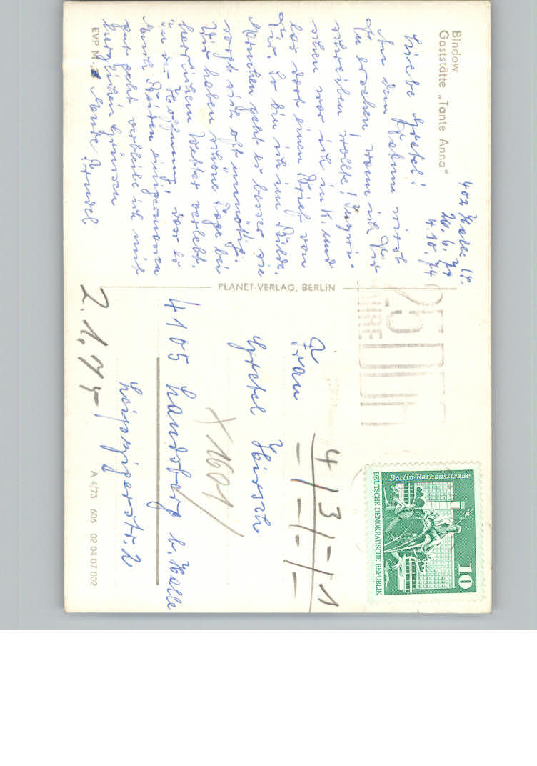 31178698 Bindow Gasthaus Tante Anna postalisch nicht gelaufen KatCode: 11110012061217