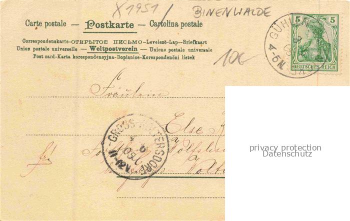 74117756 alte Postkarte Binenwalde Neuruppin Brandenburg Panorama Ruppiner Schweiz postalisch gelaufen Erhaltung siehe scans [FriedD77] KatCode: 11110012068320