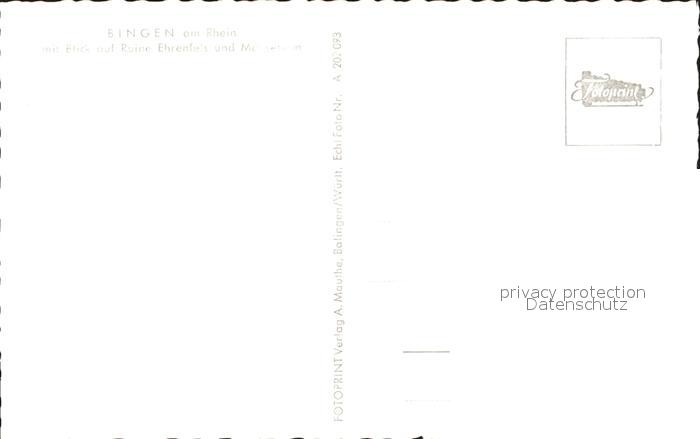 71861540 Bingen Rhein Blick auf Ruine Ehrenfels und Maeuseturm Ruhebank postalisch nicht gelaufen Erhaltung siehe scans KatCode: 11110007339005