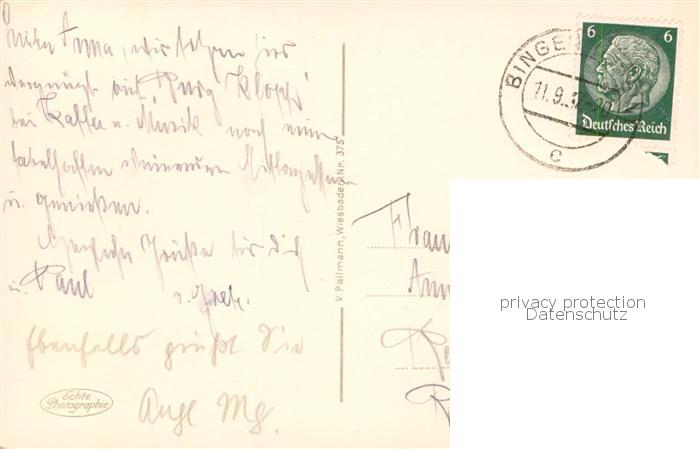 73810734 alte Postkarte Bingen Rhein Blick von der Rossel auf Bingerbrueck Maeuseturm und Ruine Ehrenfels postalisch gelaufen Erhaltung siehe scans [WerneD78] KatCode: 11110007339005