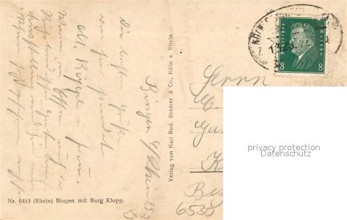 73564671 alte Postkarte Bingen Rhein Burg Klopp postalisch gelaufen Erhaltung siehe scans [LiesaD40] KatCode: 11110007339005
