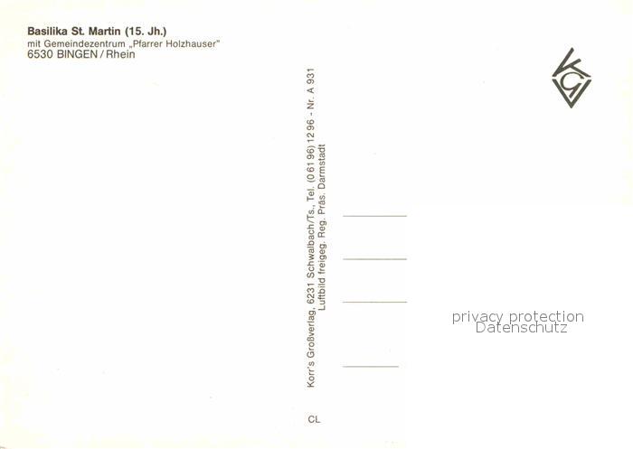 72867450 Bingen Rhein Fliegeraufnahme Basilika St. Martin postalisch nicht gelaufen Erhaltung siehe scans [LiesaD40] KatCode: 11110007339005