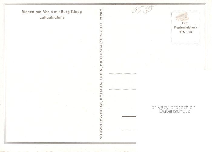 73280131 Bingen Rhein Fliegeraufnahme Burg Klopp postalisch nicht gelaufen Erhaltung siehe scans [NatalD47] KatCode: 11110007339005
