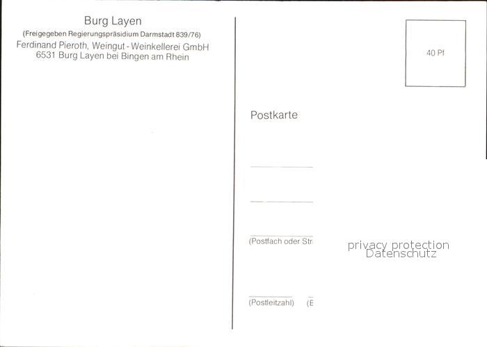 72545399 Bingen Rhein Fliegeraufnahme Burg Layen postalisch nicht gelaufen Erhaltung siehe scans [AndreD76 kv012box] KatCode: 11110007339005