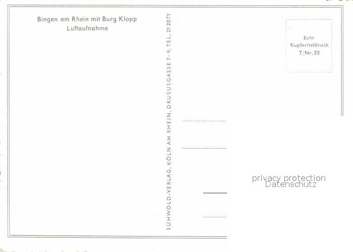 72746260 Bingen Rhein Fliegeraufnahme mit Burg Klopp postalisch nicht gelaufen Erhaltung siehe scans [LiesaD40] KatCode: 11110007339005