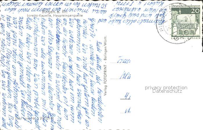 72033777 alte Postkarte Bingen Rhein Loretta Kapelle Haupteingangseite postalisch gelaufen Erhaltung siehe scans KatCode: 11110007339005