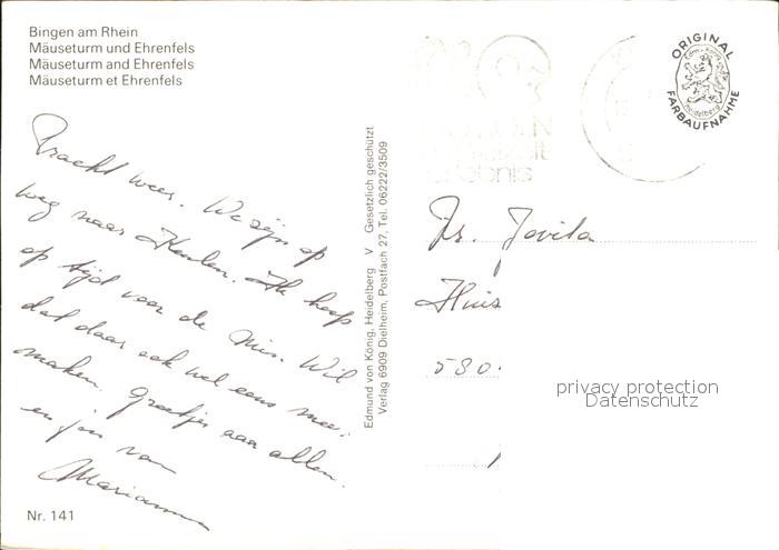 72312315 alte Postkarte Bingen Rhein Maeuseturm Ehrenfels Dampfer postalisch gelaufen Erhaltung siehe scans KatCode: 11110007339005