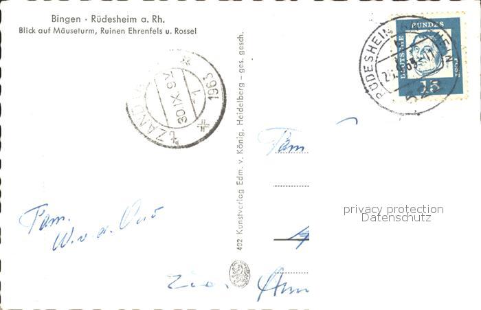 72198108 alte Postkarte Bingen Rhein Maeuseturm Ruinen Ehrenfels und Rossel postalisch gelaufen Erhaltung siehe scans KatCode: 11110007339005