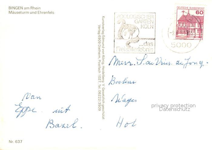 73306654 alte Postkarte Bingen Rhein Maeuseturm und Ehrenfels postalisch gelaufen Erhaltung siehe scans [WerneD78] KatCode: 11110007339005