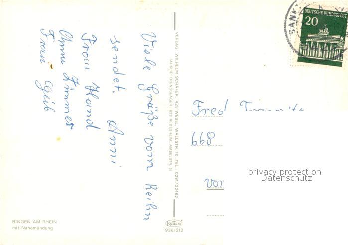73574856 alte Postkarte Bingen Rhein Panorama mit Nahemuendung postalisch gelaufen Erhaltung siehe scans [FriedD77] KatCode: 11110007339005