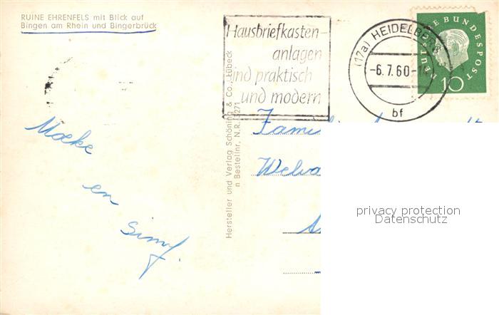 72981787 alte Postkarte Bingen Rhein Ruine Ehrenfels Bingerbrueck Fliegeraufnahme postalisch gelaufen Erhaltung siehe scans [FriedD77] KatCode: 11110007339005