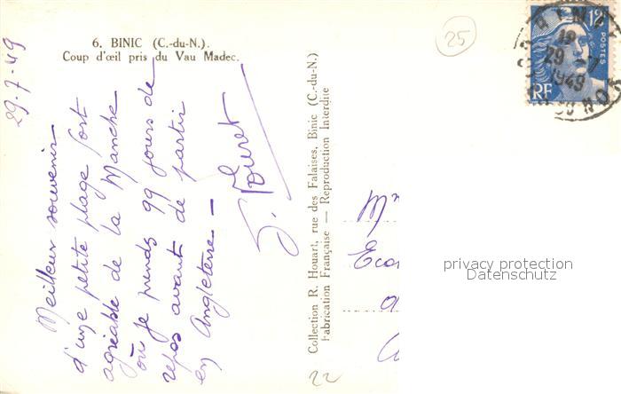 13501230 carte postale Binic Cotes d Armor Copu d oeil pris du Vau Madec postalisch gelaufen Erhaltung siehe scans [KathaD81] KatCode: 11170022422007