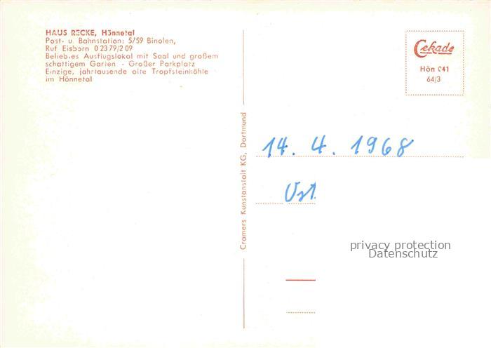 74029342 Binolen Balve Gaststaette Haus Recke Ausflugsziel Hoennetal Landschaftspanorama postalisch nicht gelaufen Erhaltung siehe scans [FriedD77] KatCode: 11110005962008