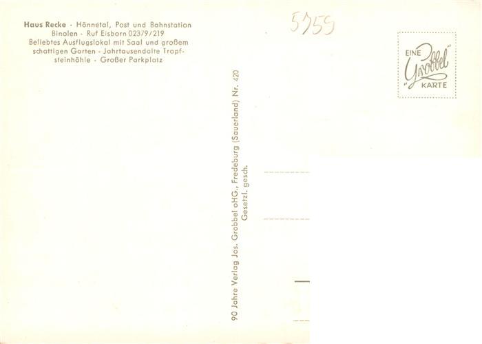73943404 Binolen Balve Haus Recke Hoennetal Reckenhoehle postalisch nicht gelaufen Erhaltung siehe scans [WerneD78] KatCode: 11110005962008