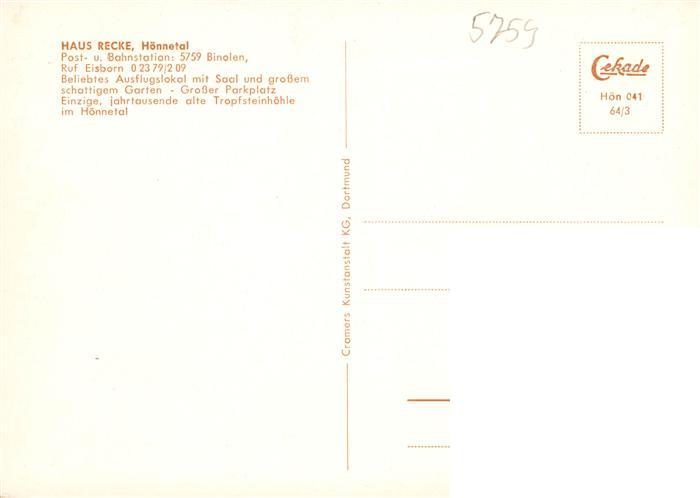73943403 Binolen Balve Haus Recke Im Hoennetal Teilansichten postalisch nicht gelaufen Erhaltung siehe scans [WerneD78] KatCode: 11110005962008
