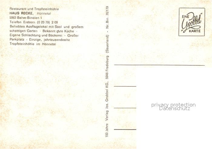 73045919 Binolen Haus Recke Restaurant und Tropfsteinhoehle postalisch nicht gelaufen Erhaltung siehe scans [WerneD78] KatCode: 11110005962008