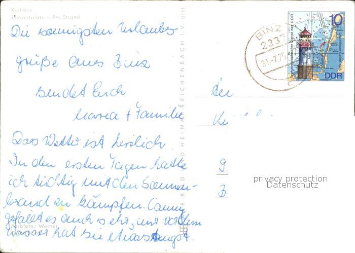 72418402 alte Postkarte Binz Ostseebad Ruegen Kurhaus Konzertplatz Strand postalisch gelaufen Erhaltung siehe scans KatCode: 11110013061005