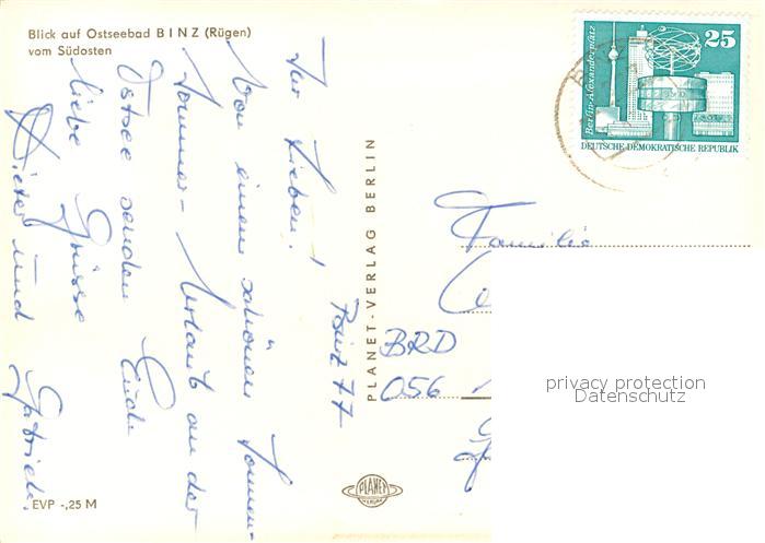 73137860 alte Postkarte Binz Ruegen postalisch gelaufen Erhaltung siehe scans [NatalD47] KatCode: 11110013061005