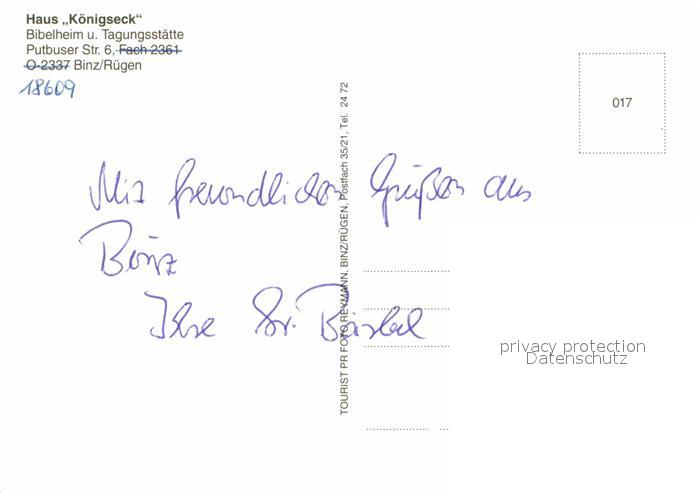 72772800 Binz Ruegen Bibelheim Haus Koenigseck postalisch nicht gelaufen Erhaltung siehe scans [WerneD78] KatCode: 11110013061005