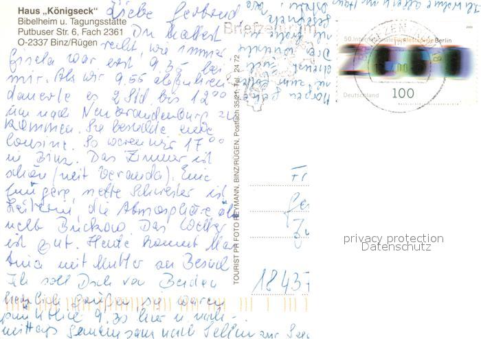 73005272 alte Postkarte Binz Ruegen Bibelheim Haus Koenigseck postalisch gelaufen Erhaltung siehe scans [WerneD78] KatCode: 11110013061005