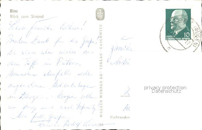 72327261 alte Postkarte Binz Ruegen Blick zum Strand postalisch gelaufen Erhaltung siehe scans KatCode: 11110013061005
