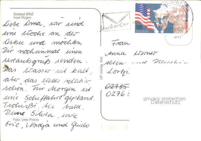 72334098 alte Postkarte Binz Ruegen Bootsanleger Seebruecke Strand postalisch gelaufen Erhaltung siehe scans KatCode: 11110013061005