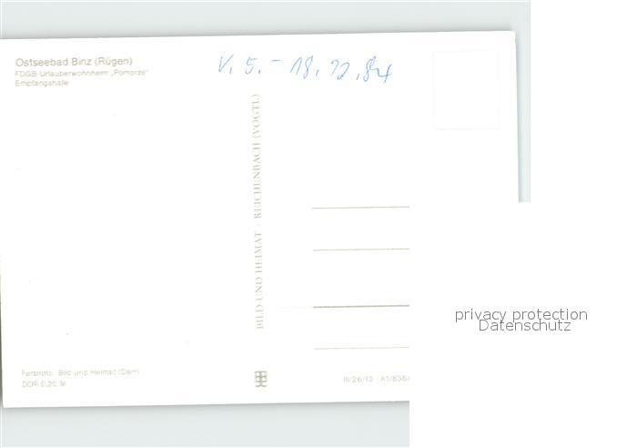 72199551 Binz Ruegen Empfangshalle FDGB Urlauberwohnheim Pomorze Ostseebad postalisch nicht gelaufen Erhaltung siehe scans KatCode: 11110013061005