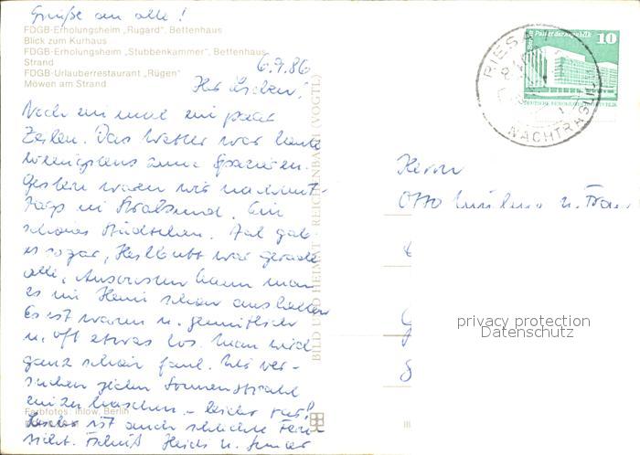 72374366 alte Postkarte Binz Ruegen Erholunsgheim Rugard Bettenhaus Stubbenkammer Moewen postalisch gelaufen Erhaltung siehe scans KatCode: 11110013061005