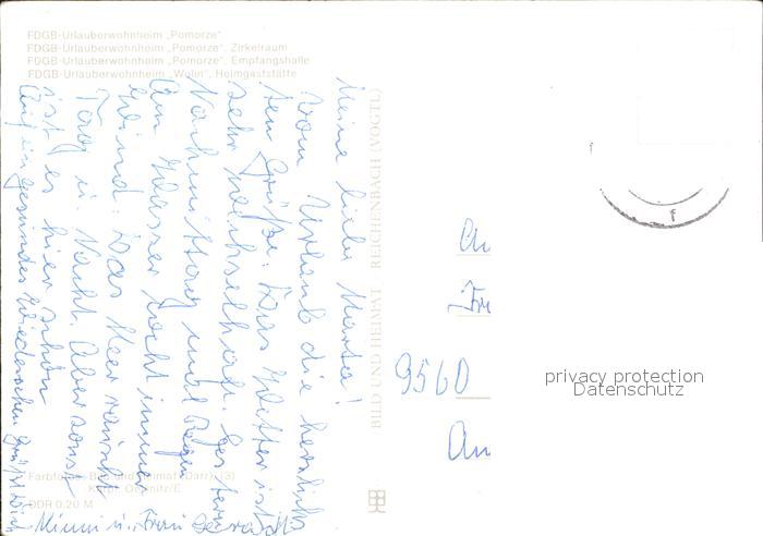 72493953 alte Postkarte Binz Ruegen FDG Urlauberwohnheim Pomorze postalisch gelaufen Erhaltung siehe scans KatCode: 11110013061005