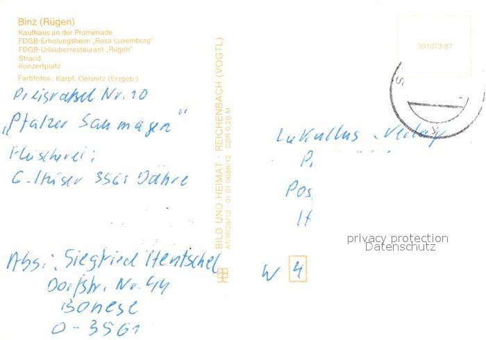 73306702 alte Postkarte Binz Ruegen FDGB Erholungsheim Strand Konzertplatz postalisch gelaufen Erhaltung siehe scans [KathaD81] KatCode: 11110013061005