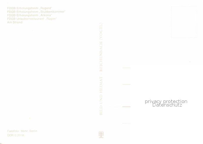 72629306 Binz Ruegen FDGB Erholungsheime Rugard Stubbenkammer Arkona und Ruegen Strandpartie postalisch nicht gelaufen Erhaltung siehe scans [WerneD78] KatCode: 11110013061005
