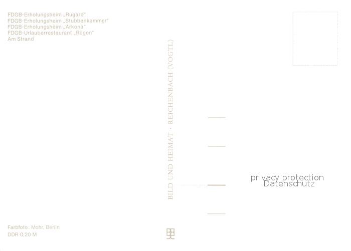 72950563 Binz Ruegen FDGB Erholungsheime Rugard Stubbenkammer Arkona und Ruegen Strandpartie postalisch nicht gelaufen Erhaltung siehe scans [WerneD78] KatCode: 11110013061005