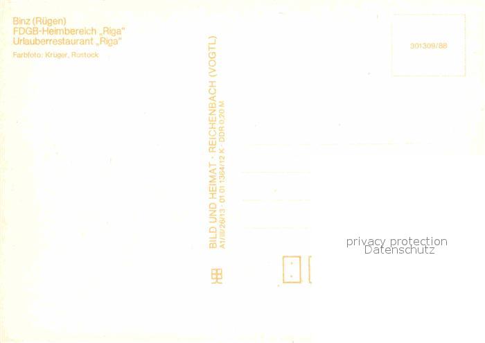 72727820 Binz Ruegen FDGB Heimbereich Riga postalisch nicht gelaufen Erhaltung siehe scans [LiesaD40] KatCode: 11110013061005