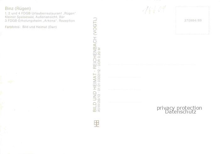 74142006 BINZ Ruegen FDGB Urlauberrestaurant Ruegen Kleiner Speisesaal Bar FDGB Erholungsheim Arkona Rezeption postalisch nicht gelaufen Erhaltung siehe scans [WerneD78] Wern Katcode 11110013061005