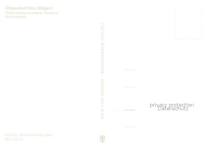 73544154 Binz Ruegen FDGB Urlauberwohnheim Pomorze Empfangshalle postalisch nicht gelaufen Erhaltung siehe scans [FriedD77] KatCode: 11110013061005