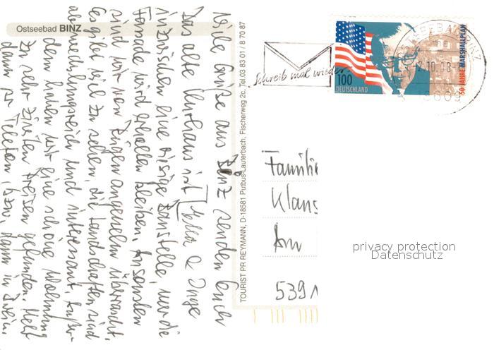 73683807 alte Postkarte Binz Ruegen Fliegeraufnahme postalisch gelaufen Erhaltung siehe scans [LiesaD40] KatCode: 11110013061005