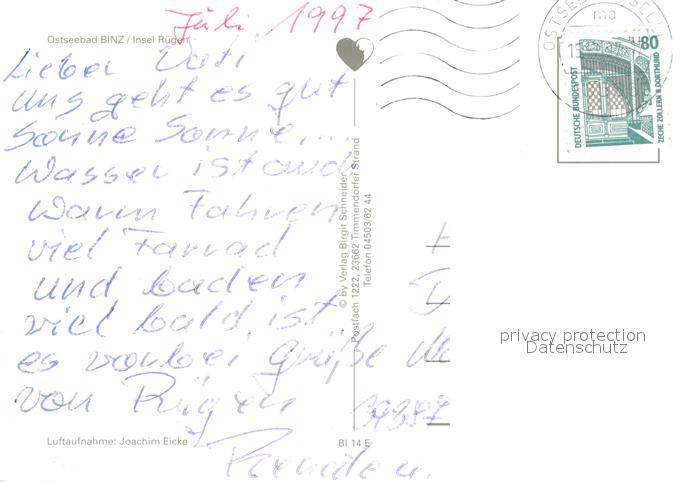 72961292 alte Postkarte Binz Ruegen Fliegeraufnahme postalisch gelaufen Erhaltung siehe scans [WerneD78] KatCode: 11110013061005