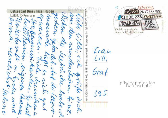 72815378 alte Postkarte Binz Ruegen Fliegeraufnahme postalisch gelaufen Erhaltung siehe scans [NatalD47] KatCode: 11110013061005