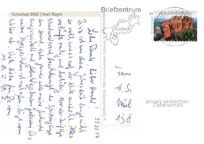 73755039 alte Postkarte Binz Ruegen Fliegeraufnahme Binzer Strand Wendeplatz Seebruecke Kurverwaltung und Baederbahn postalisch gelaufen Erhaltung siehe scans [FriedD77] KatCode: 11110013061005