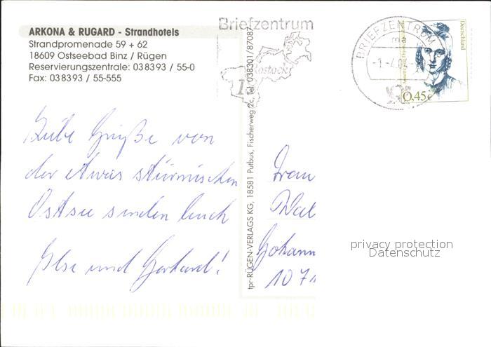 72255645 alte Postkarte Binz Ruegen Fliegeraufnahme mit Strandhotel Arkona und Rugard postalisch gelaufen Erhaltung siehe scans KatCode: 11110013061005