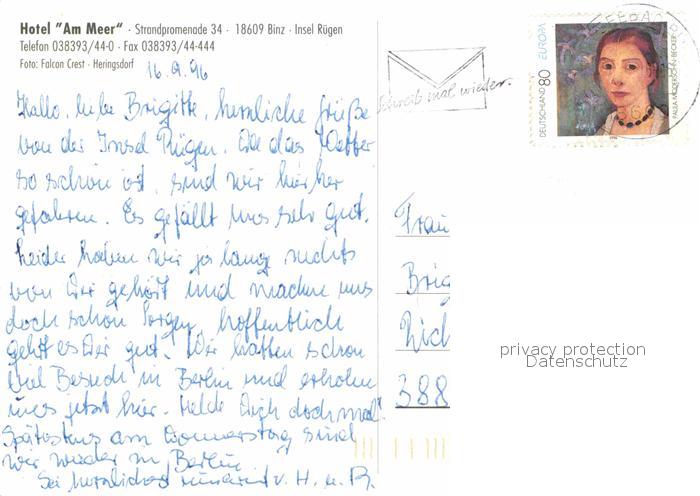 72827038 alte Postkarte Binz Ruegen Hotel Am Meer Strand Seebruecke Fliegeraufnahme postalisch gelaufen Erhaltung siehe scans [FriedD77] KatCode: 11110013061005