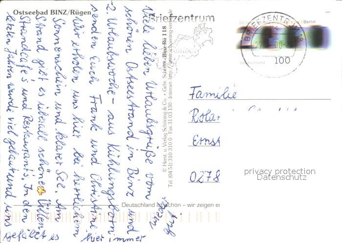72331359 alte Postkarte Binz Ruegen Jagdschloss Granitz Duenepark Hauptstrasse postalisch gelaufen Erhaltung siehe scans KatCode: 11110013061005