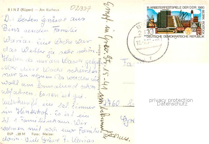72941237 alte Postkarte Binz Ruegen Kurhaus postalisch gelaufen Erhaltung siehe scans [NatalD47] KatCode: 11110013061005