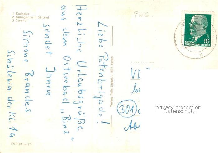 73135136 alte Postkarte Binz Ruegen Kurhaus Anlagen am Strand Strandpartie postalisch gelaufen Erhaltung siehe scans [FriedD77] KatCode: 11110013061005