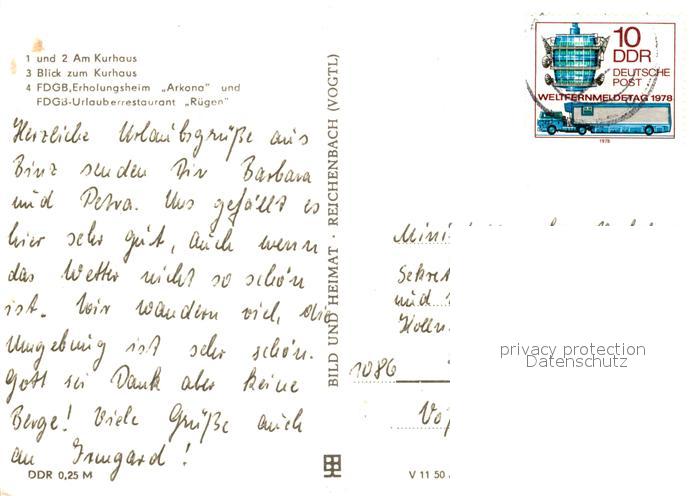 73102456 alte Postkarte Binz Ruegen Kurhaus FDGB Erholungsheim Arkona FDGB Urlauberrestaurant Ruegen postalisch gelaufen Erhaltung siehe scans [KathaD81] KatCode: 11110013061005
