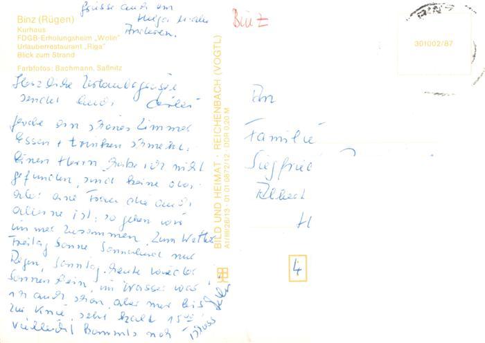 73901457 alte Postkarte Binz Ruegen Kurhaus FDGB-Erholungsheim Wolin Restaurant Riga Strand postalisch gelaufen Erhaltung siehe scans [FriedD77] KatCode: 11110013061005