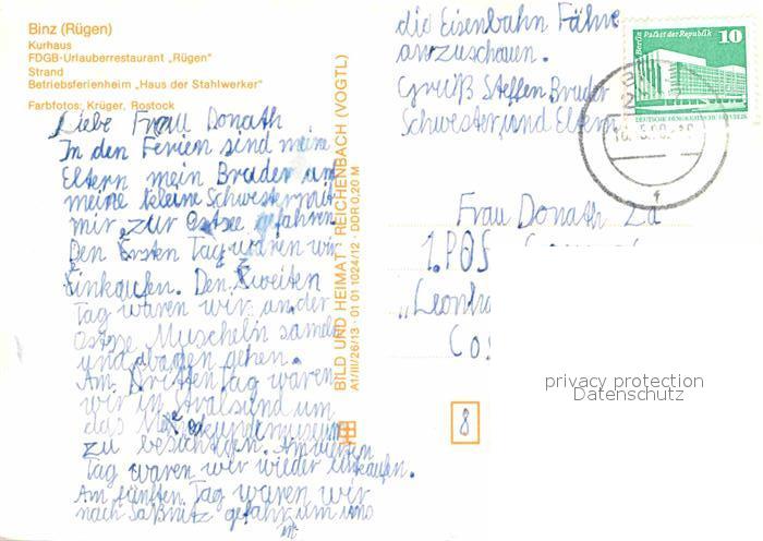 72917825 alte Postkarte Binz Ruegen Kurhaus Restaurant Ruegen Strand Betriebferienheim Haus der Stahlwerker postalisch gelaufen Erhaltung siehe scans [LiesaD40] KatCode: 11110013061005