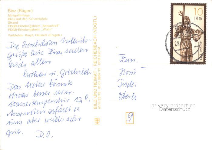 72383107 alte Postkarte Binz Ruegen Minigolf Strand Erholungsheime postalisch gelaufen Erhaltung siehe scans KatCode: 11110013061005