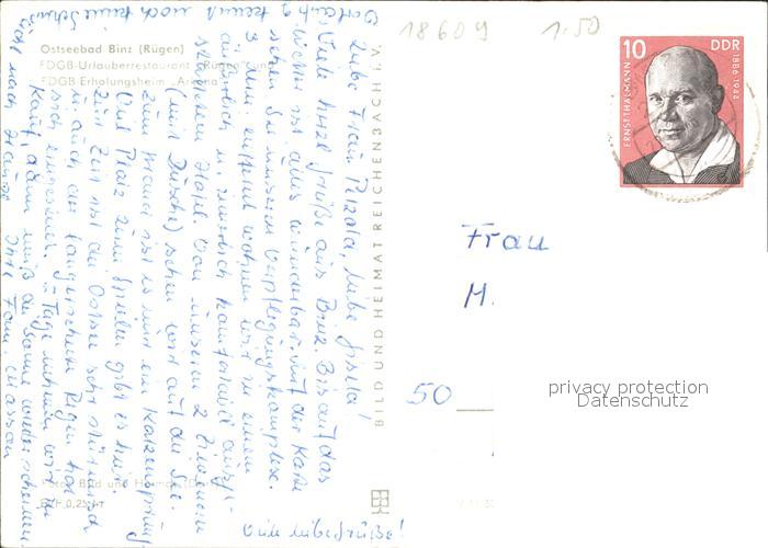 71993169 alte Postkarte Binz Ruegen Ostseebad FDGB Restaurant Ruegen und Erholungsheim Arkona postalisch gelaufen Erhaltung siehe scans KatCode: 11110013061005