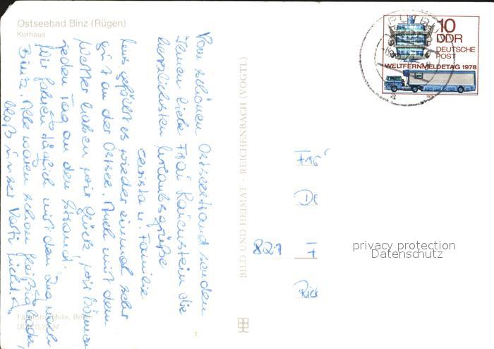 72417009 alte Postkarte Binz Ruegen Ostseebad Kurhaus postalisch gelaufen Erhaltung siehe scans KatCode: 11110013061005